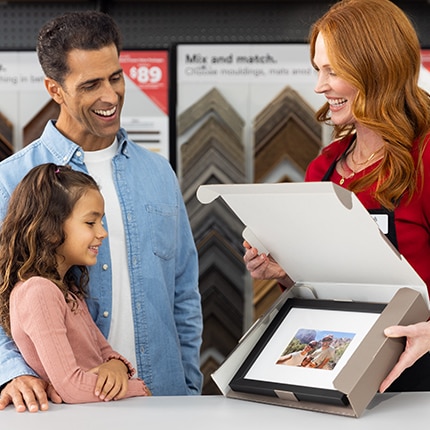 Upload a photo and we’ll print, custom frame and package it while you shop. Get started in store or online.